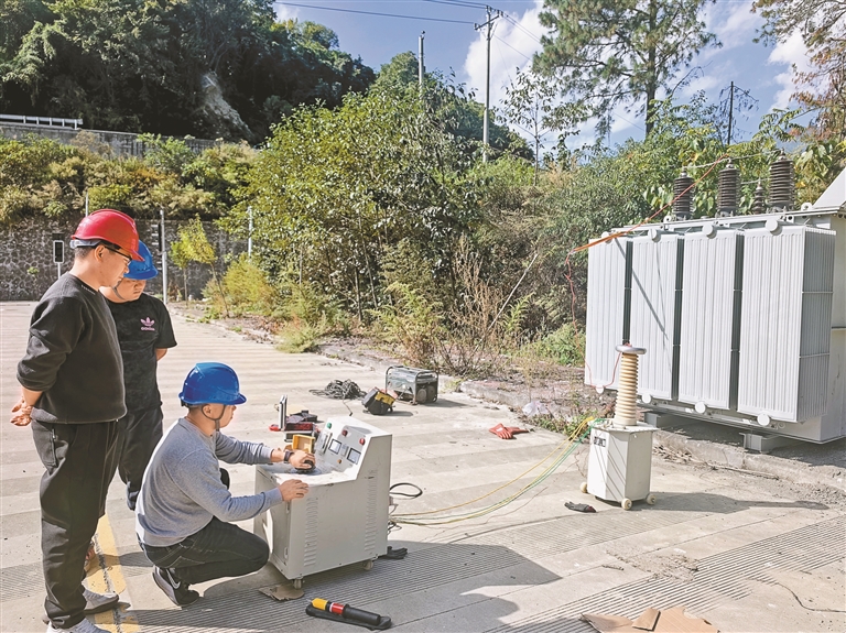图为国网察隅县供电公司工作人员正在对变压器进行试验调试。