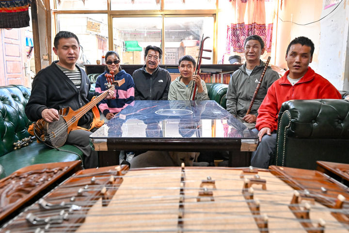 每天下午,乐队成员都会聚在小院,在阳光下专注排练。达琼的笛声清越,边巴顿珠的扎念琴欢快,旦增欧珠的二胡悠扬,达瓦次仁的扬琴婉转,次仁曲珍的歌声纯净……我陶醉在音乐里,几乎已经忘记,配合默契的他们是一群盲人。