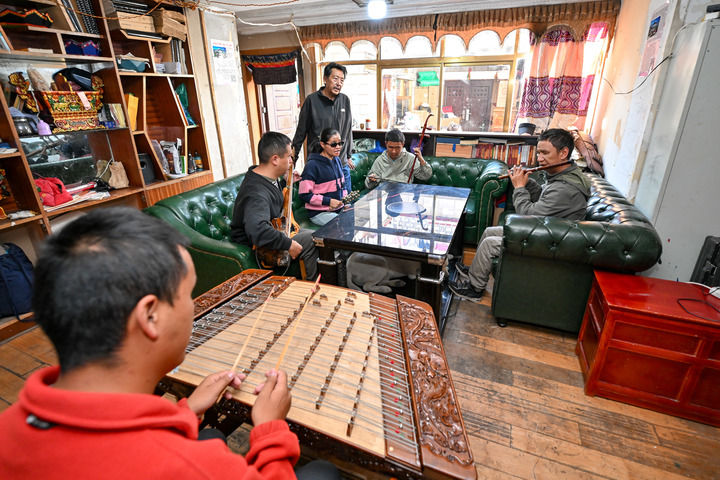 2025年10月11日,咔哒嘎布盲人乐团在排练。新华社记者张铖摄