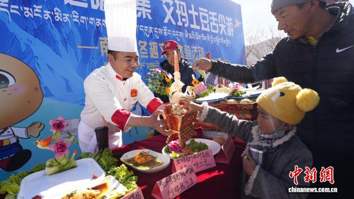 图为艾玛土豆舌尖游活动,游客品尝特色美食。南木林县文化和旅游局供图。