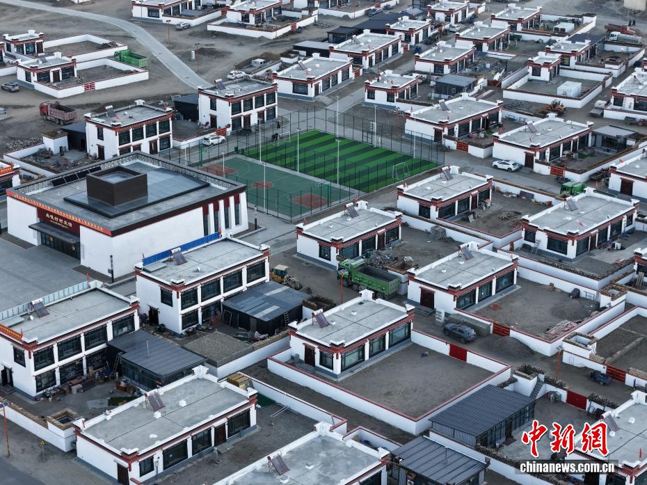 2025年1月7日,西藏定日发生6.8级地震,时隔近一年,12月24日,中新社记者探访灾后重建。日喀则森嘎村的藏式新房错落有致,柏油路连通家家户户,屋顶太阳能热水器整齐排列,炊烟袅袅间满是生机。据悉,此次日喀则地震灾后重建覆盖7县47乡镇486村,2.2万余户重建民房、1.05万余户维修加固民房已全部竣工交付,受灾民众喜迁新居。图为重建后的森嘎村一角。(无人机照片)中新社记者 贡嘎来松 摄