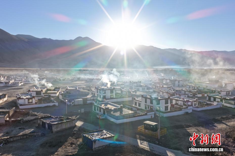 2025年1月7日,西藏定日发生6.8级地震,时隔近一年,12月24日,中新社记者探访灾后重建。日喀则森嘎村的藏式新房错落有致,柏油路连通家家户户,屋顶太阳能热水器整齐排列,炊烟袅袅间满是生机。据悉,此次日喀则地震灾后重建覆盖7县47乡镇486村,2.2万余户重建民房、1.05万余户维修加固民房已全部竣工交付,受灾民众喜迁新居。图为重建后的森嘎村清晨。(无人机照片)中新社记者 贡嘎来松 摄