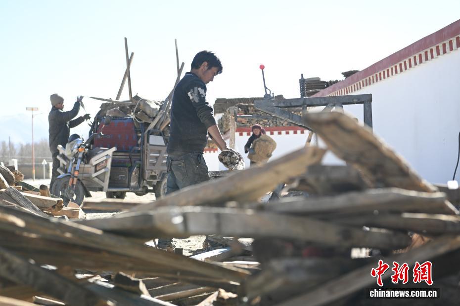 2025年1月7日,西藏定日发生6.8级地震,时隔近一年,12月24日,中新社记者探访灾后重建。日喀则森嘎村的藏式新房错落有致,柏油路连通家家户户,屋顶太阳能热水器整齐排列,炊烟袅袅间满是生机。据悉,此次日喀则地震灾后重建覆盖7县47乡镇486村,2.2万余户重建民房、1.05万余户维修加固民房已全部竣工交付,受灾民众喜迁新居。图为森嘎村村民在新房前割柴火。中新社记者 贡嘎来松 摄
