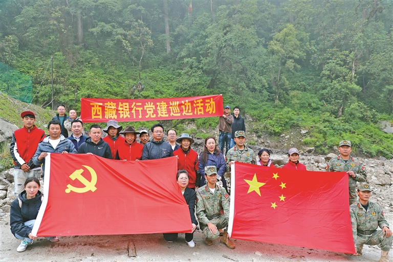 图为西藏银行与洛扎县拉郊乡开展党建巡边活动。