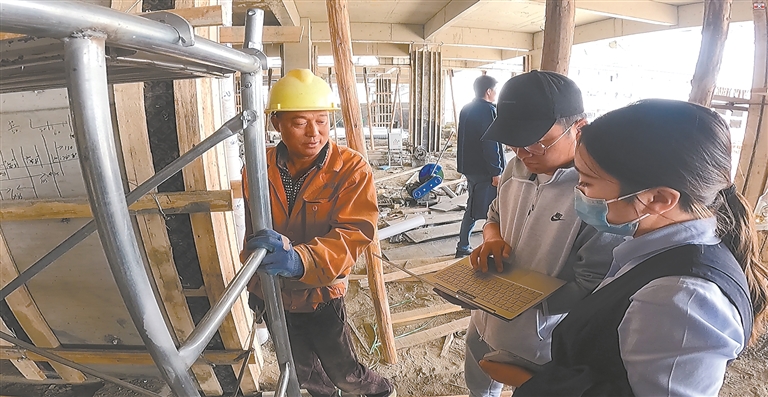图为西藏银行员工进工地为农民工办理工资代发业务。