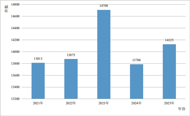 2021年—2025年全区检察机关“四大检察”业务趋势变化图
