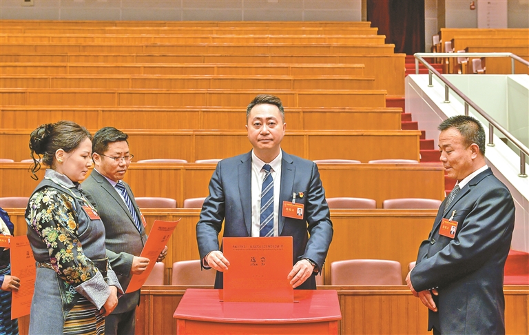 人大代表正在投票。记者 丹增群培 摄