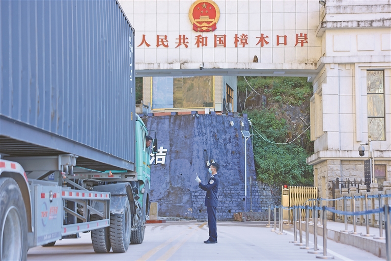 车辆驶远后,副站长刘汉武向记者介绍:“节日期间跨境货运不减,我们提前对接行程、随到随检,既要保障货物往来,也要助力口岸经贸发展。”