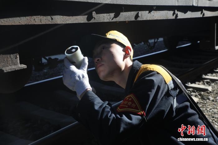 柴超来自吉林长春,邓桓来自甘肃张掖,同龄同岗,一北一西,跨越千里相聚高原,在元宵佳节默契守护货运列车的安全。“两兄弟”手指口呼“8道信息匹配正确,核对无误,开始检查车辆”,俩人分别在两侧拿着编组一辆辆车辆逐个核对车号、货物装载加固等情况,每一个动作规范利落,重点车标记上鲜明的记号,目光如炬般看着视频排查着可能存在的安全隐患。