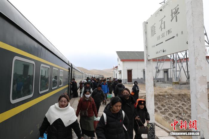 2月11日,西藏安多牧民等乘客在青藏铁路雁石坪站乘车。仁增 摄