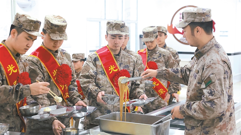 新兵踏入军营的第一餐。