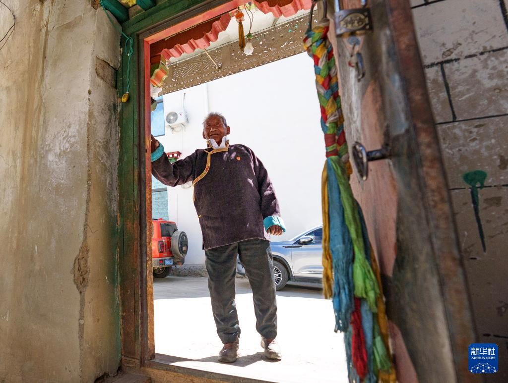 次仁桑珠在西藏山南市扎囊县桑耶镇的家中(3月25日摄)。