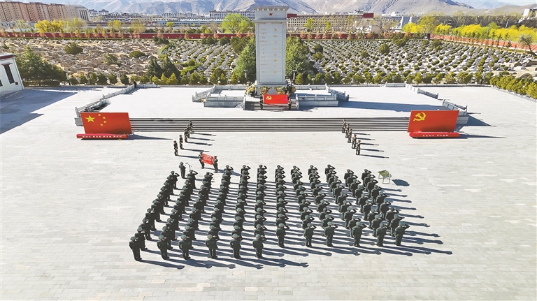西藏军区某部在拉萨烈士陵园开展清明祭扫活动。记者 王香香 通讯员 吴成淼 摄