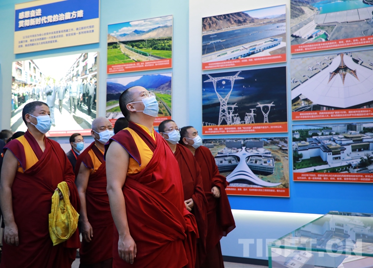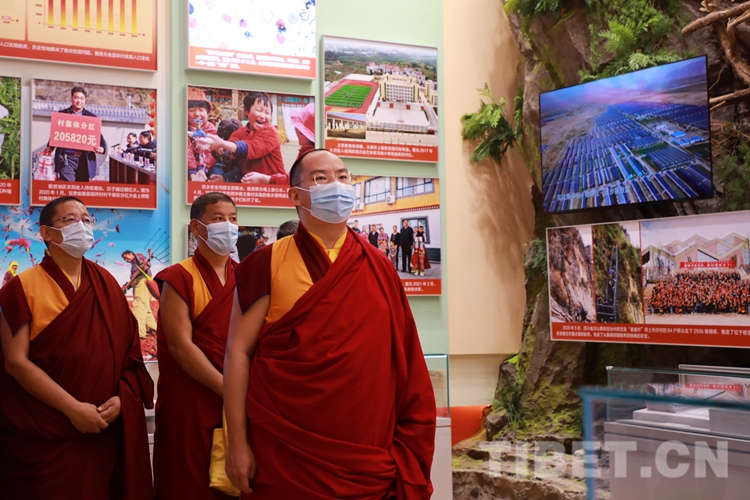 参观结束后,班禅表示,新时代十年以来我们国家所取得的伟大成就,不是单一方面,而是政治、经济、文化、社会、生态文明等方面的综合发展;发展成果不是局限在一个民族、一个地方,而是惠及全体中华民族。新时代十年全方位的历史性成就证明,只有在以习近平同志为核心的党中央的领导下,中华民族伟大复兴的征程才能够顺利前行;习近平新时代中国特色社会主义思想是中国人民战胜一切困难挑战、解决一切问题的根本法宝,是我们更好地为祖国统一、民族团结做贡献的精神动力。