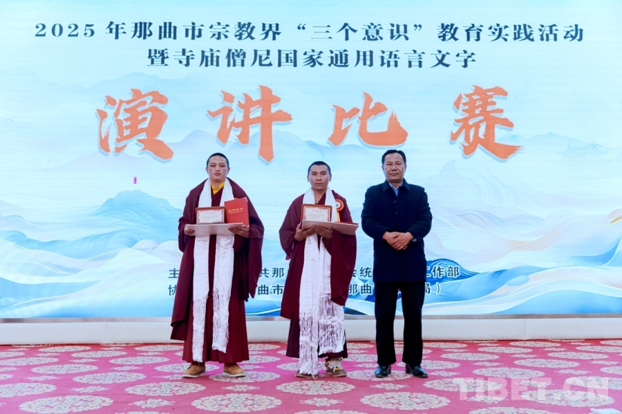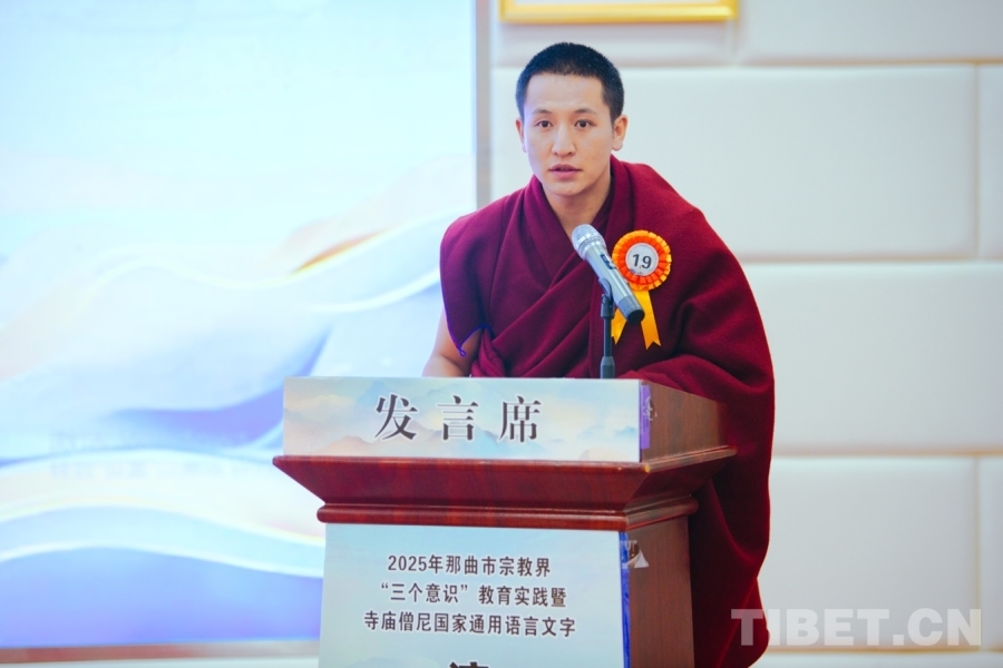中国西藏网讯 11月13日,2025年那曲市宗教界“三个意识”教育实践暨寺庙僧尼国家通用语言文字演讲比赛举行。来自那曲市10县(区)的22名寺庙僧尼站在演讲台上,用流利的普通话畅谈学习心得、分享家乡发展变化。