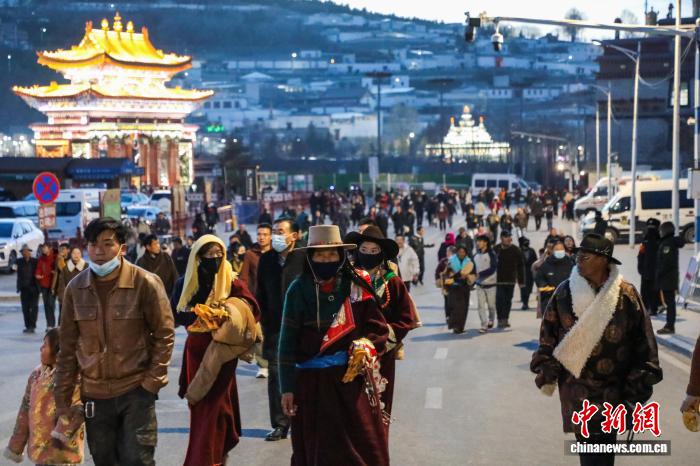 3月3日,来到青海塔尔寺观赏酥油花展的游客。 马铭言 摄