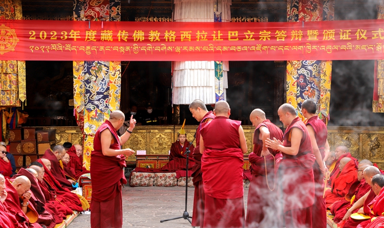 4月23日(藏历水兔年3月3日)上午,西藏自治区2023年度藏传佛教学经僧人考核晋升格西拉让巴学位立宗答辩暨颁证仪式在拉萨大昭寺举行。