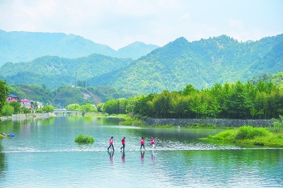 浙江省杭州市临安区湍口镇组建由基层党员组成的“河小二”护水队,定期开展护河巡河相关活动。图为湍口镇迎丰村的“河小二”党员志愿者对塘溪进行日常河道保洁及巡查。新华社发