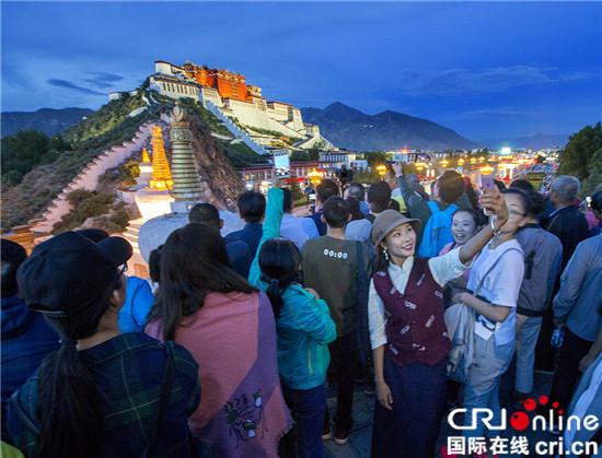 游客在布达拉宫景区拍照