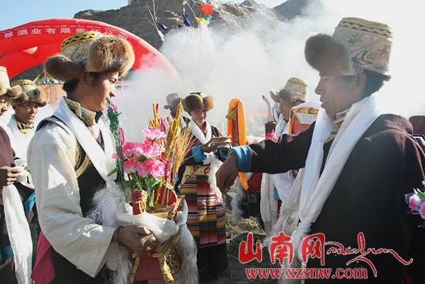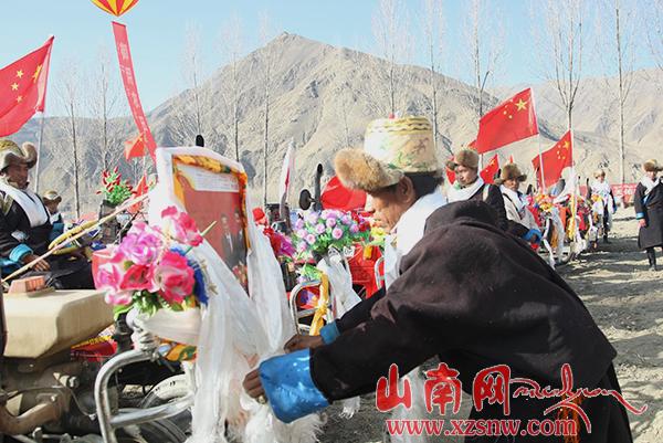 图为春耕开犁仪式村民正在向拖拉机手敬献哈达、切玛。图片来源山南网