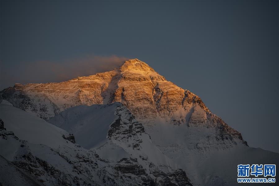 20时35分,落日余晖洒在珠峰山体上(5月4日摄)。新华社记者 孙非 摄