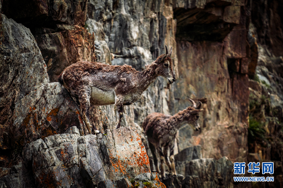 岩羊,是国家二级重点保护野生动物。它们常年生活在海拔2000到3000米的高山裸岩、高山草甸和陡峭山谷之中,具有极高的攀岩技术,可以在高山峭壁上自由跳跃,加之其警觉性非常高,难以接近,被称为“岩壁上的精灵”。