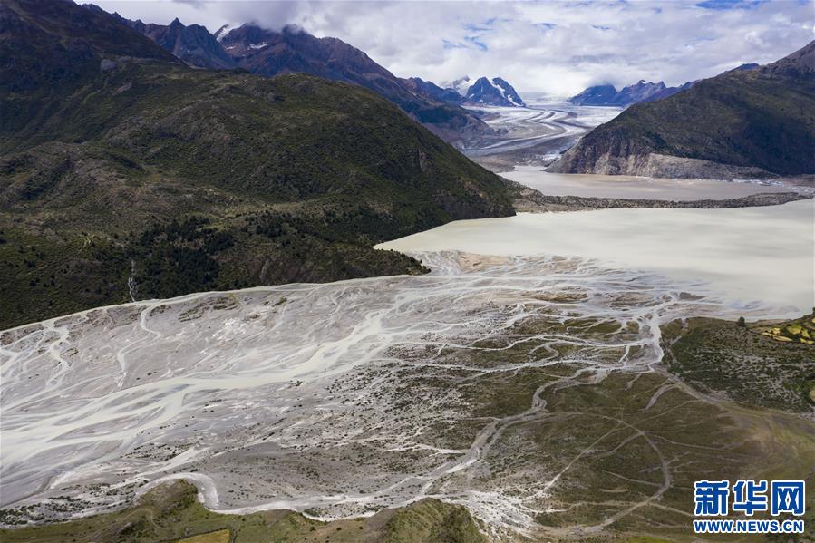 这是9月10日在西藏八宿县然乌镇来古村拍摄的来古冰川景观(无人机照片)。 新华社记者 普布扎西 摄