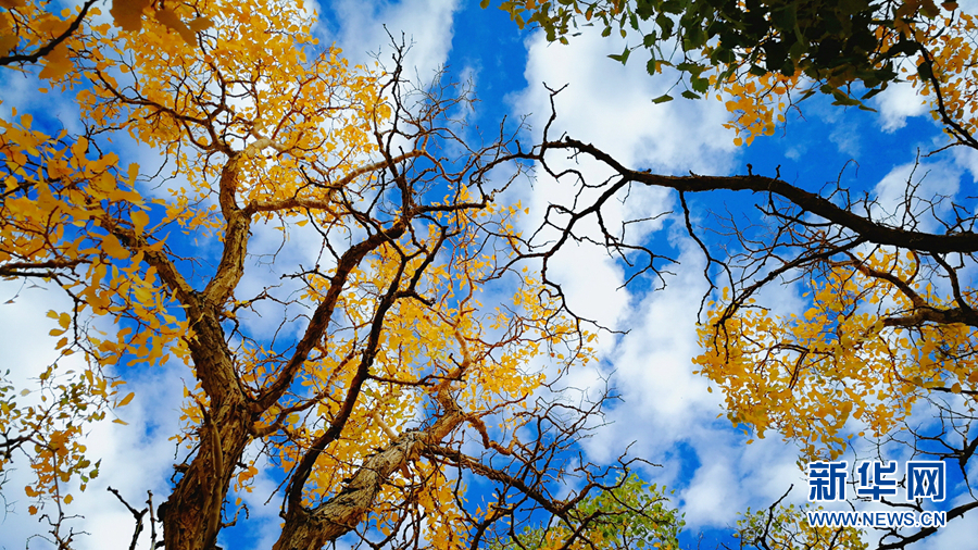 看,蓝天白云胡杨林,相映成画,这大自然的时尚感,你发现了吗?