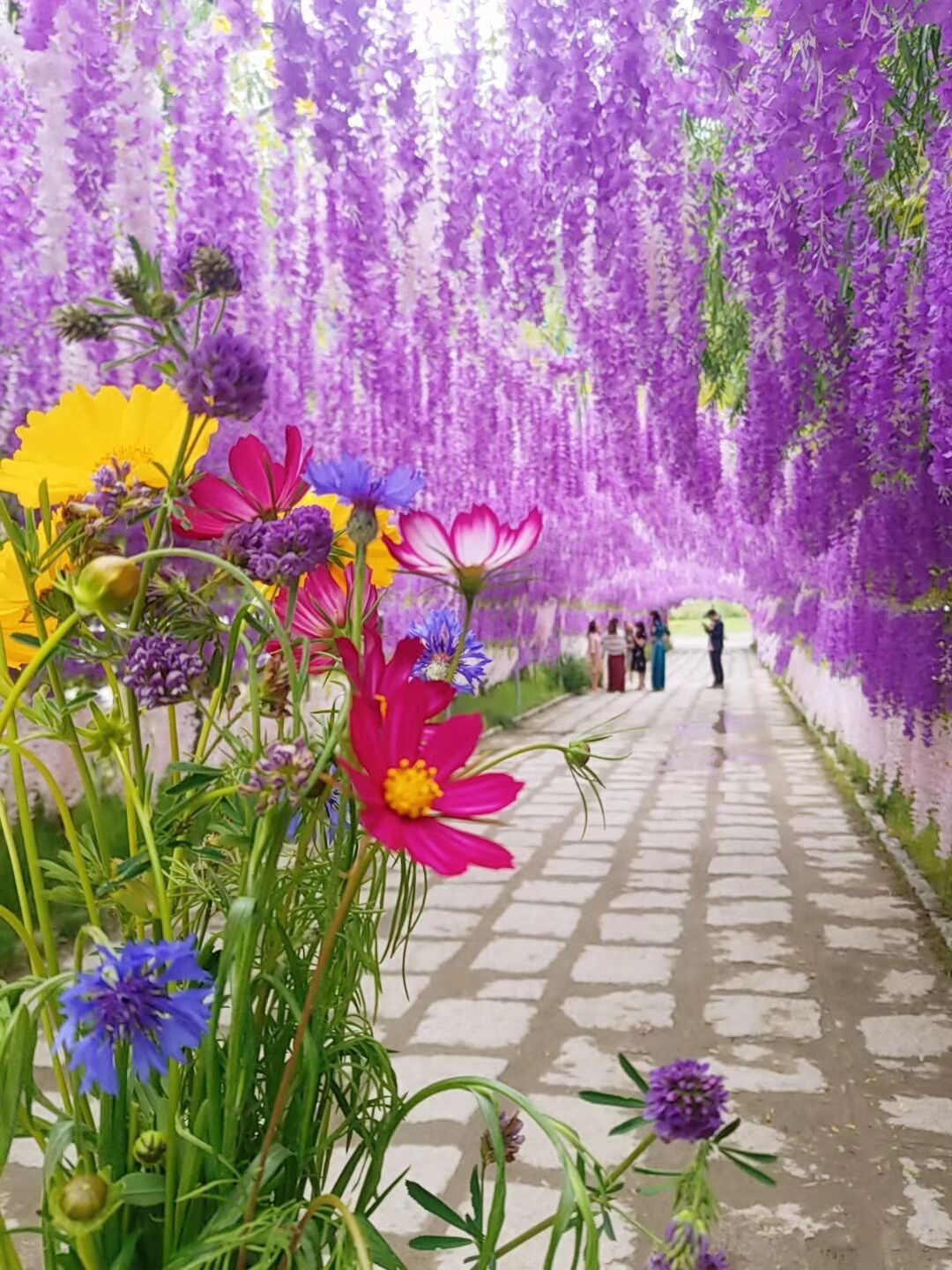 在通往波玛村的小路上,风景更好。两边是园区种植的各种色彩艳丽的花朵,让人应接不暇,在蓝天白云的映衬下显得更加动人可爱,这里简直就是花的海洋,花香浓郁,沁人心脾;形态万千,摇曳多姿,充满着一片欣欣向荣的景象。