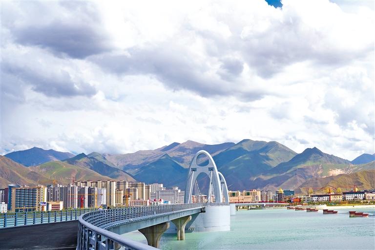 据了解,中华文化公园项目占地面积1057亩,位于拉萨河两岸,东起柳梧大桥,西至拉贡大桥,环抱约3000亩拉萨河水域。公园以“中华民族伟大复兴梦”为主题,以“铸牢中华民族共同体意识”为主线,集公共艺术与雕塑31处,南北两岸之间由全长1093米的和美连心桥连接。和美连心桥作为标志性建筑物,可供行人及非机动车通行。这座情感之桥,将中华各民族文化更紧密地串联在一起,见证着深厚的民族团结情。