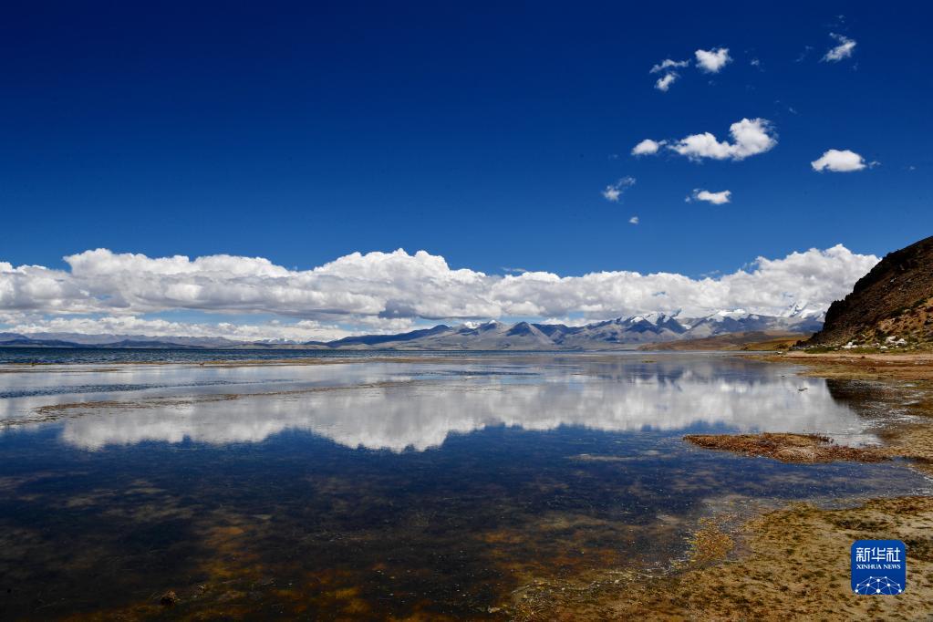 蓝天白云下的玛旁雍错(8月2日摄)。新华社记者 张汝锋 摄