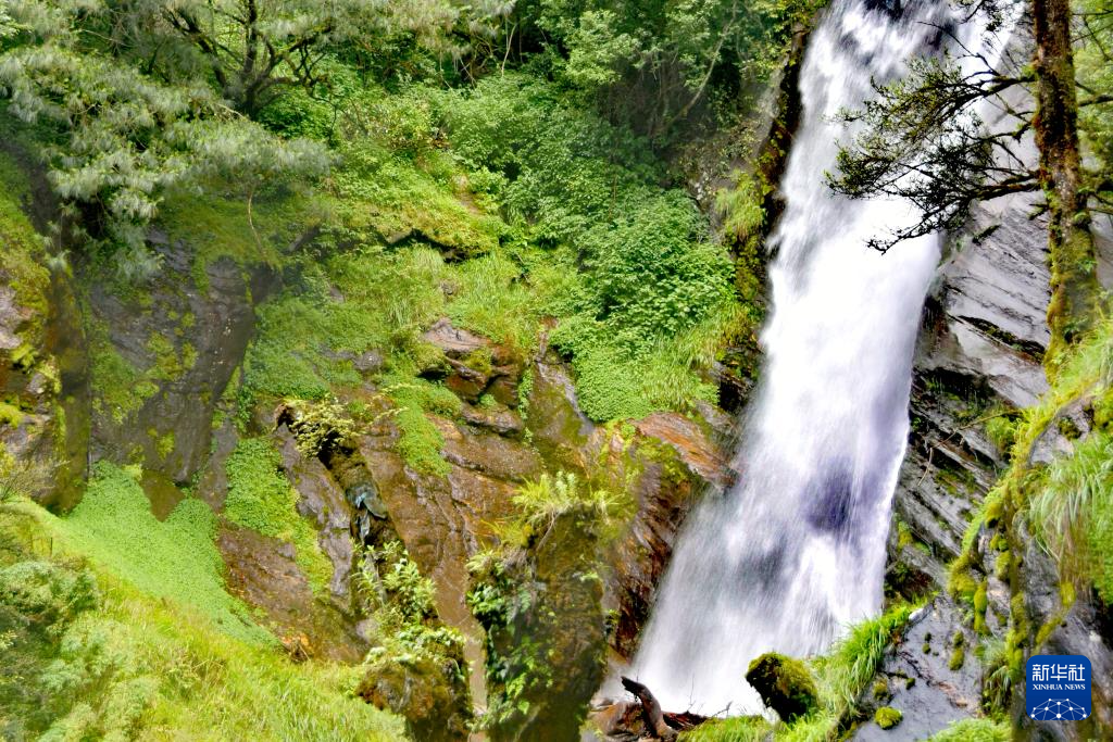 这是勒布沟内的一处瀑布(6月27日摄)。新华社记者 刘文博 摄