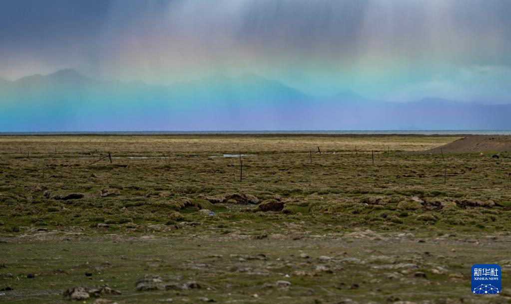 这是在普莫雍错附近拍摄的彩虹(7月4日摄)。新华社记者 孙非 摄