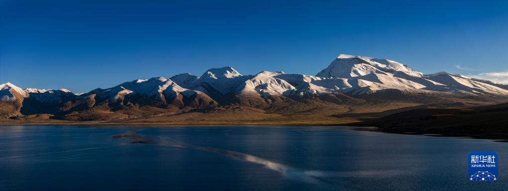 这是傍晚时分的纳木那尼雪山和玛旁雍错(无人机照片,9月14日摄)。新华社记者 姜帆 摄