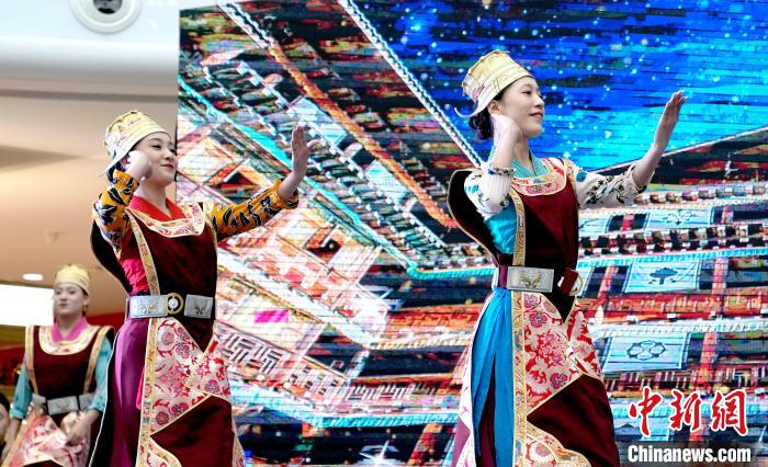 图为西藏林芝第二十二届桃花旅游文化节推介会(拉萨站)现场的文艺演出。李林 摄