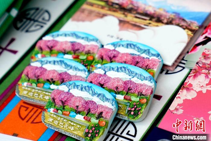图为西藏林芝第二十二届桃花旅游文化节推介会(拉萨站)现场,展出的文创产品。李林 摄