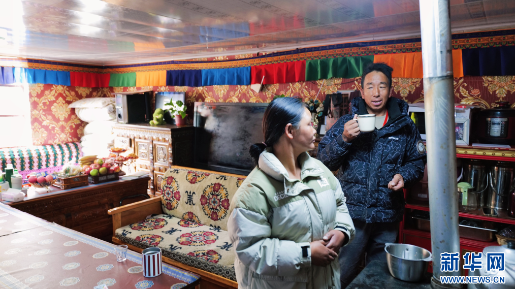图为尼吉和丈夫罗启明在家中(9月28日摄)。新华网 柑丹鸯琦摄