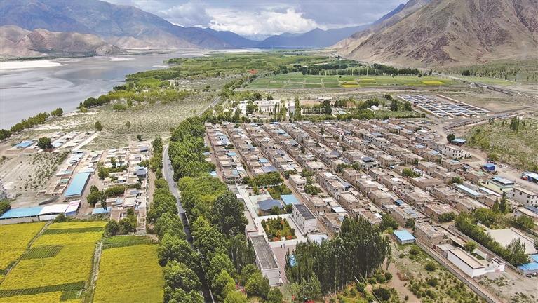 走进山南市乃东区金鲁社区,一排排藏式小院整齐排列,村前的雅鲁藏布江缓缓流淌。