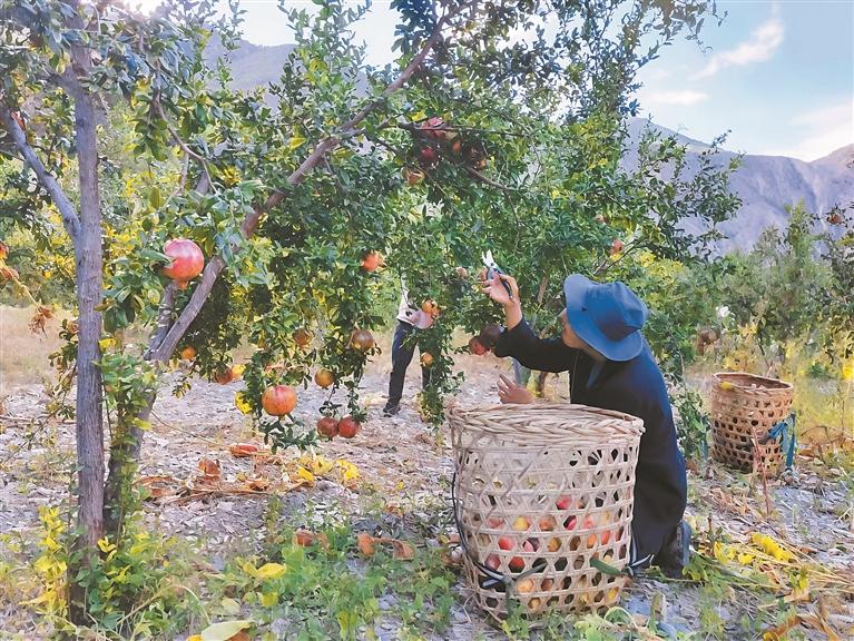 昌西村村民在采摘自家种植的石榴。记者 王珊 谢筱纯 摄