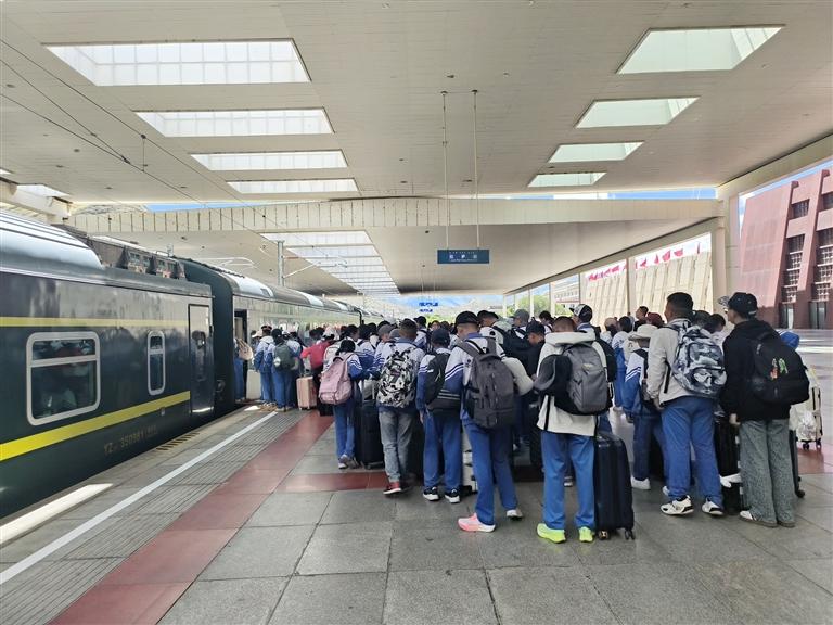 西藏学子乘列车赴区外开启新学期。(资料图)
