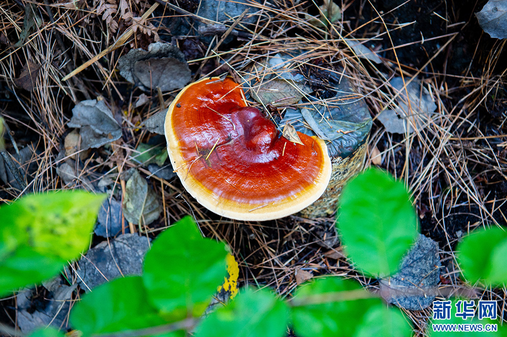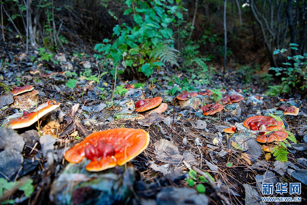 西藏山南市洛扎县拉康社区股份经济合作社仿野生试种基地培育的灵芝(10月10日摄)。新华网 旦增努布 摄