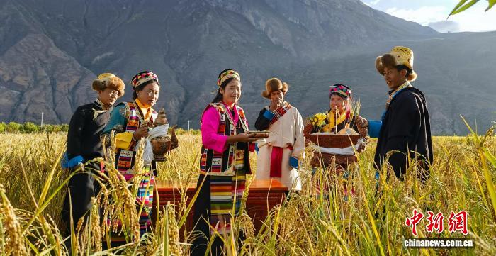 图为共康村村民举行水稻收割前的庆祝仪式。 赵延 摄