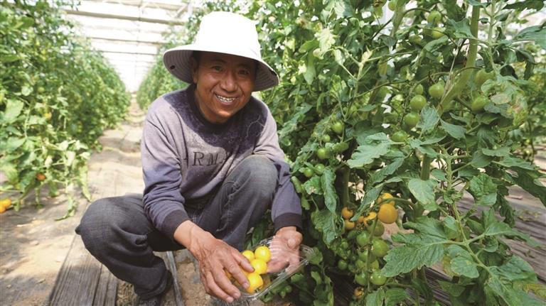 墨竹工卡县塔巴村2组村民尼玛正在大棚里照料四色圣女果。“在这里工作每月平均能挣4200元,还能学到特色果蔬的种植技术。”他笑着说。目前,园区每天提供固定岗位13个,通过土地流转、劳务用工等方式,已带动周边54户群众增收。近年来,墨竹工卡县现代农业产业园区累计向当地群众支付土地流转费625.33万元,实发劳务费累计400万元。