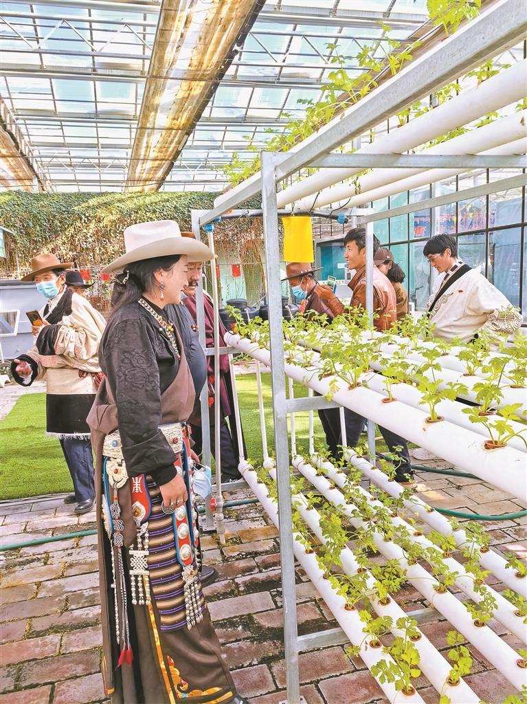 图为村民代表参观拉萨市城关区智昭农业科普示范园。记者 赵瑞阳 摄