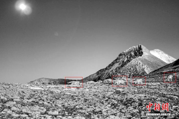 2025年4月13日,西藏拉萨乃朗谷雪豹重要栖息地记录到雪豹“拉姆”“带娃”现身于红外相机前。(乃朗生态文化保护中心供图)