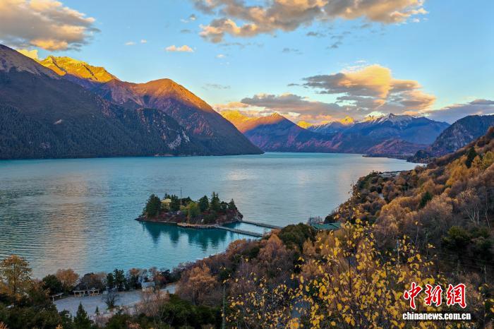 11月8日傍晚,西藏林芝巴松措景区迎来晚霞风光。中新社记者 江飞波 摄
