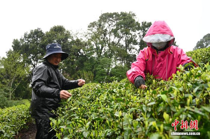 图为村民在采茶。资料图 赵朗 摄