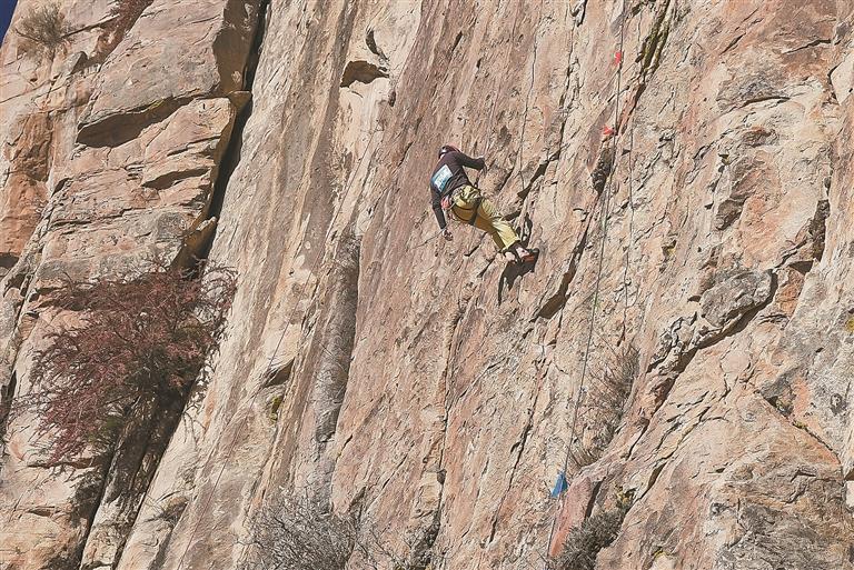11月29日,2025年西藏自治区攀岩自然岩壁公开赛在拉萨市夺底沟吉仓自然岩壁场地举行。