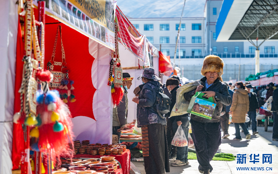 12月1日,市民在西藏自治区山南市第45届雅砻物资交流会现场挑选商品。新华网 旦增努布 摄