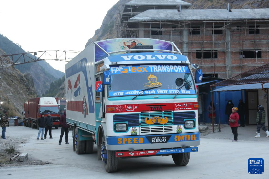 2026年1月1日,尼泊尔货柜车经过车辆查验后从中国吉隆口岸入境。新华社记者 丁增尼达 摄